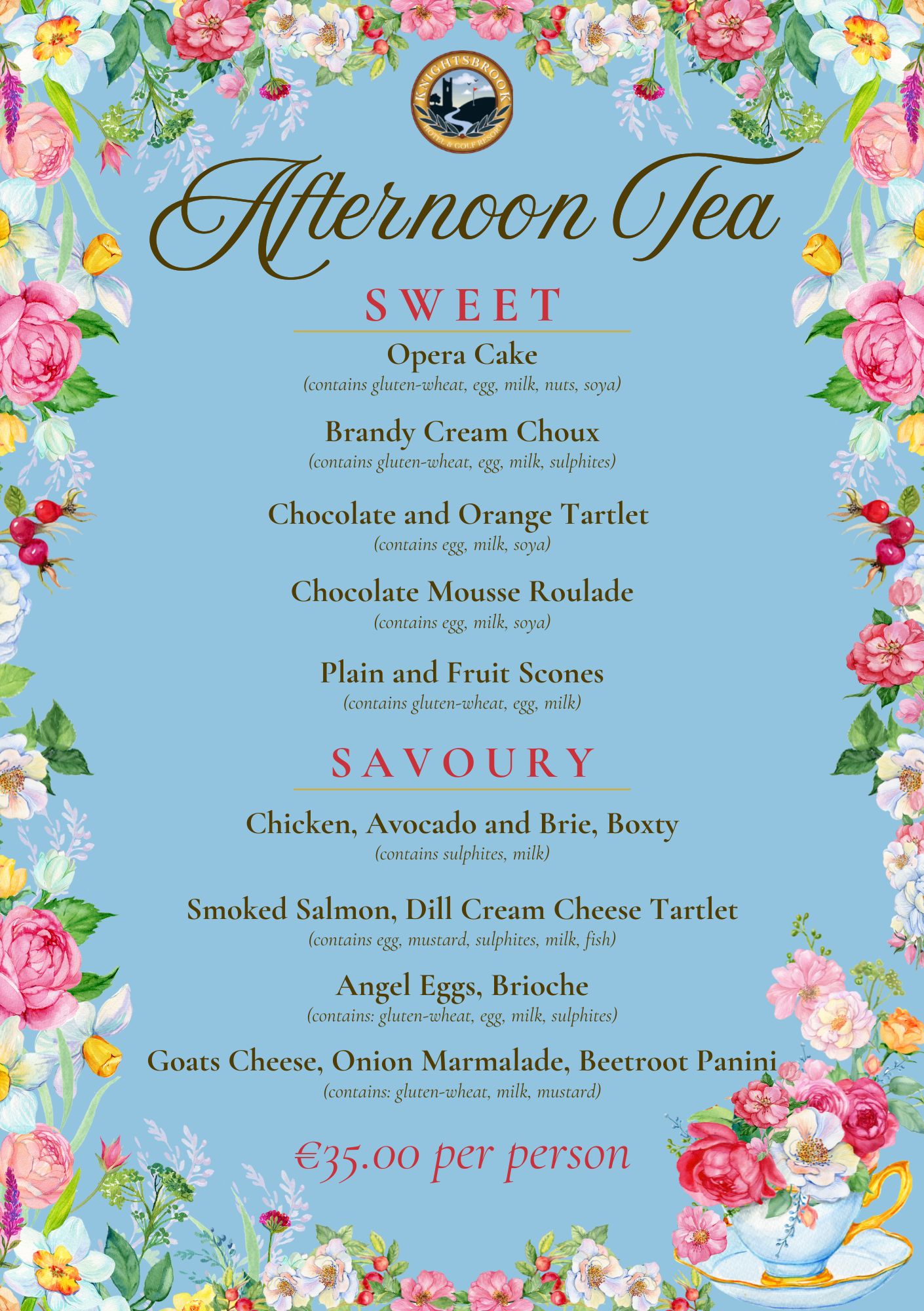Why not treat yourself to our elegant afternoon tea on our Mezzanine level overlooking our beautiful chandelier and foyer. Available daily from 13:00 - 16:00. Explore our sample menus below, subject to change based on availability of fresh produce.